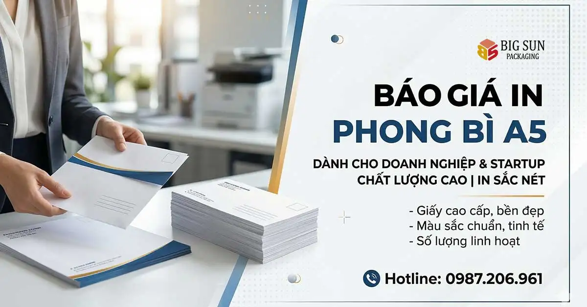 Quý khách đang tìm kiếm bảng báo giá “in bao thư a5”, “giá in phong bì 16×23”, “in phong bì a5 giá rẻ” minh bạch và chuẩn xác nhất? Dưới đây là thông tin cập nhật chi tiết quy cách cũng như chi phí sản xuất trực tiếp tại nhà máy Bao Bì Big Sun, cam kết hoàn toàn không qua trung gian giúp doanh nghiệp của bạn tối ưu đến 30% ngân sách.
