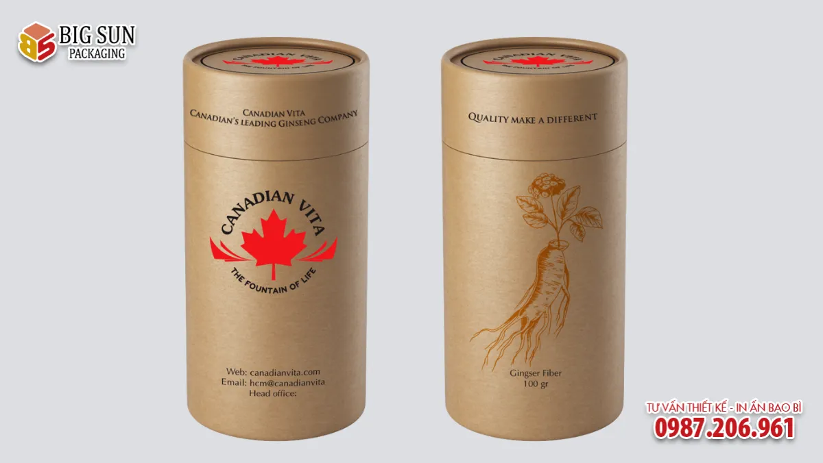 In Hộp Trụ Tròn Đựng Sâm Cao Cấp, Bao Bì Siêu Đẹp Mắt
