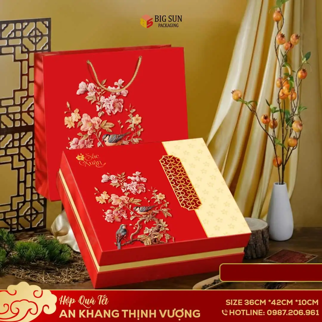 Hộp quà tết bán sẵn 2026 An Khang Thịnh Vượng màu đỏ