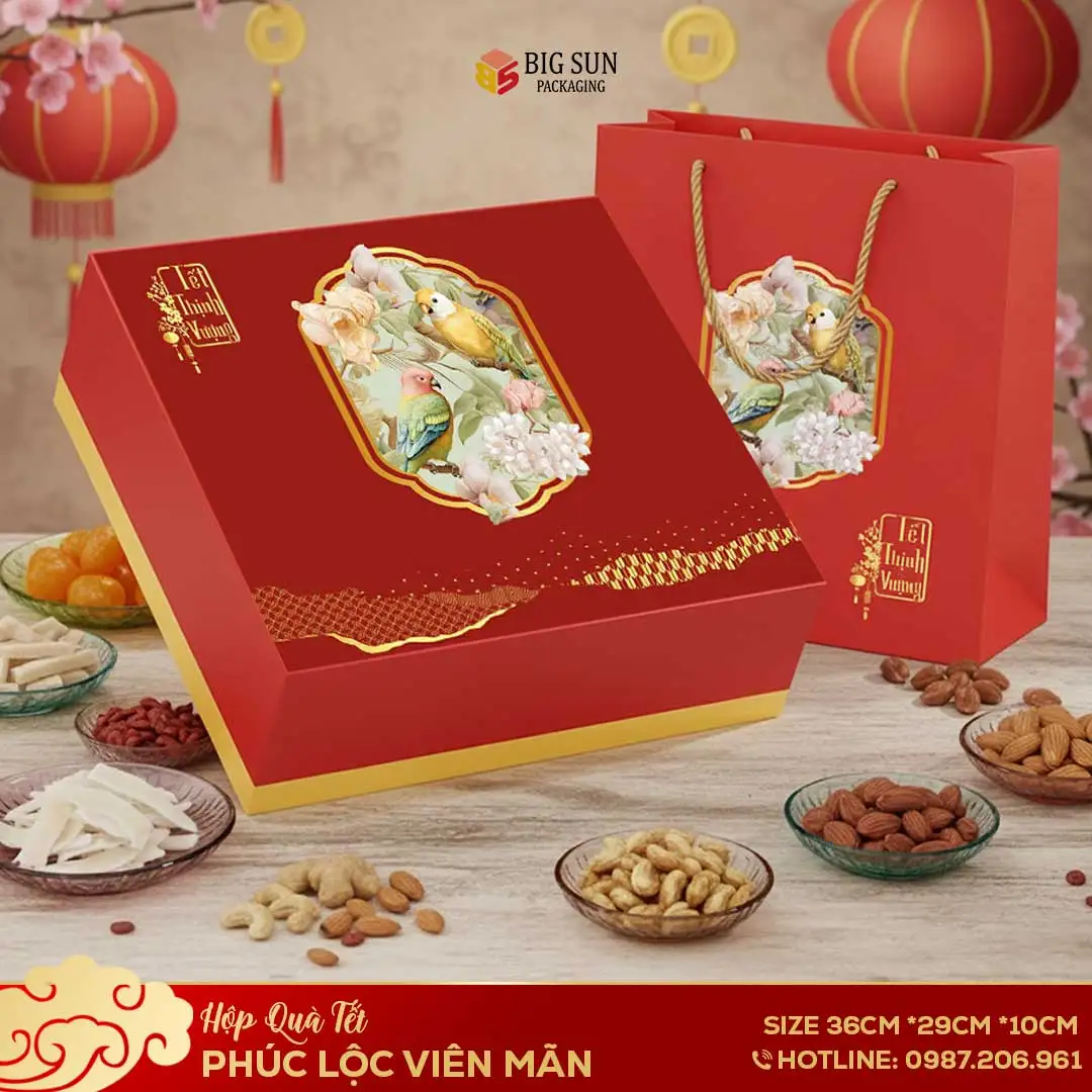 Hộp Quà Tết Bán Sẵn 2026 Phúc Lộc Viên Mãn Đỏ