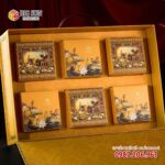 Bên trong được thiết kế với 6 hộp bánh con, thiết kế đồng bộ với hộp lớn, lặp lại họa tiết chủ đạo, tạo nên một tổng thể nhất quán và sang trọng. Khay định hình chắc chắn giúp bảo vệ những chiếc bánh thơm ngon, đảm bảo giữ nguyên vẹn hình dáng và chất lượng khi đến tay người nhận.