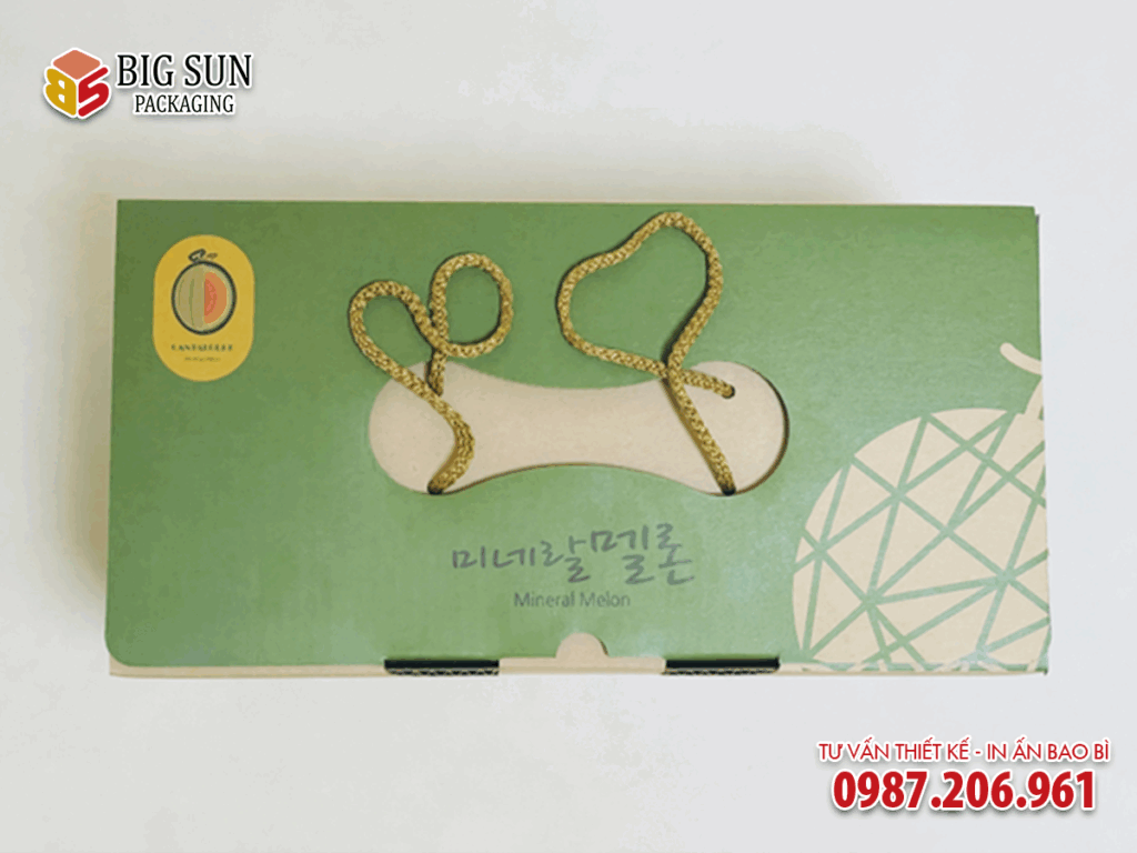 MÔ TẢ IN THÙNG CARTON ĐỰNG DƯA LƯỚI CÓ QUAI XÁCH