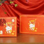 Màu sắc: Hộp sử dụng tông màu đỏ và vàng làm chủ đạo – màu của may mắn, tài lộc và sự thịnh vượng trong ngày Tết.