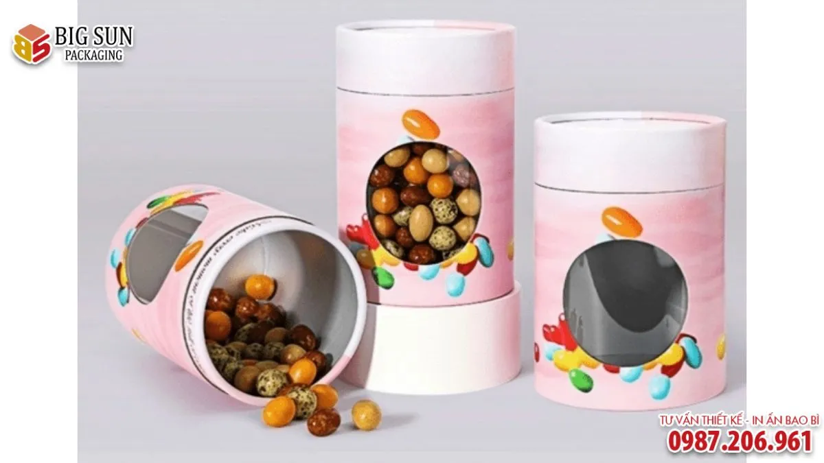 Điểm đặc biệt của công nghệ in trên mẫu hộp trụ tròn này là khả năng duy trì độ tươi của màu sắc mà không cần sử dụng các lớp màng nhựa bóng loáng hóa học.