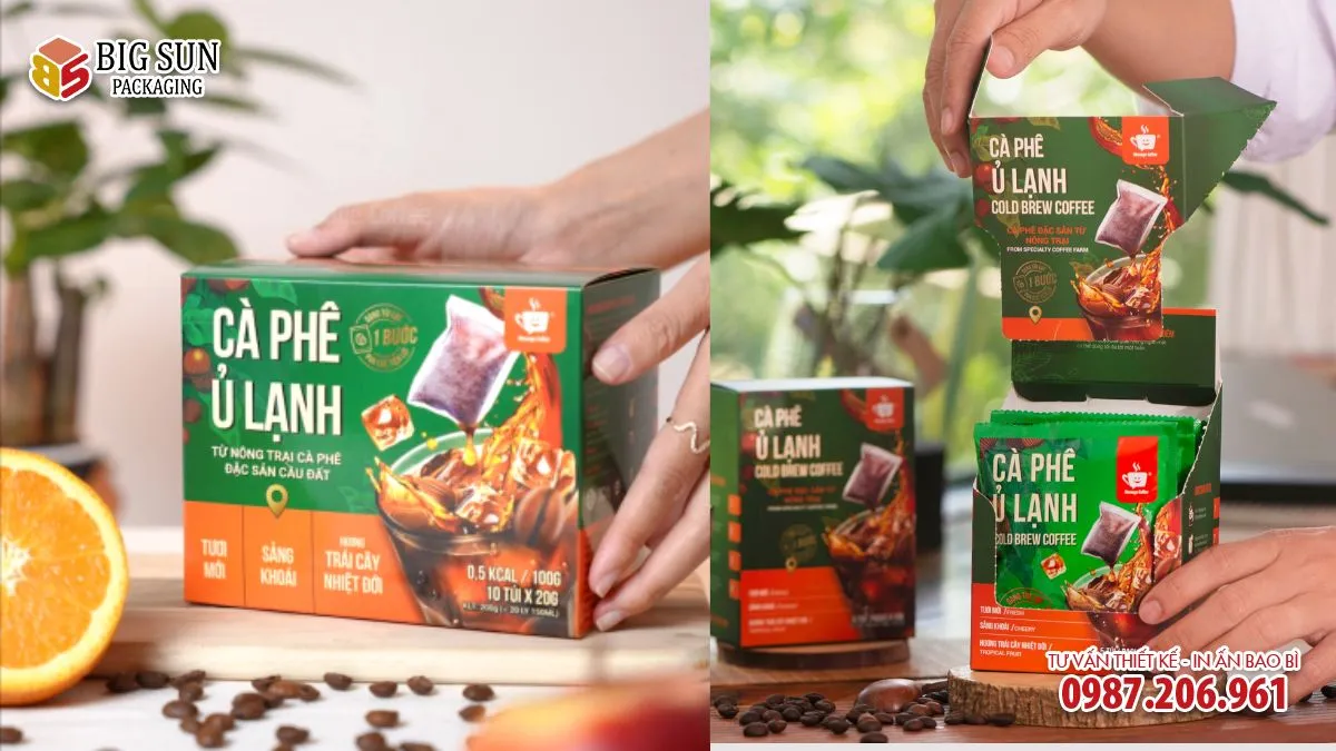 Ngoài mẫu Cà phê Cold Brew Mix vị, Big Sun còn có kinh nghiệm triển khai nhiều dự án in hộp đựng cà phê cho các dòng cà phê đặc sản, cà phê hòa tan và quà tặng. Quý khách có thể tham khảo thêm các mẫu hộp tiêu biểu của chúng tôi để tìm ra giải pháp phù hợp cho sản phẩm của mình.