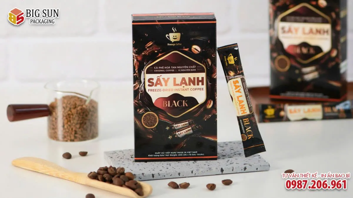Để tinh thần “đen – sạch – nguyên bản” ấy được truyền tải trọn vẹn, hộp đựng cà phê sấy lạnh Black không thể là một thiết kế ngẫu nhiên. Bao bì cần đủ tiết chế để tôn vinh chất cà phê, đủ mạnh mẽ để thể hiện cá tính, và đủ chỉn chu để xứng đáng với giá trị sản phẩm bên trong.