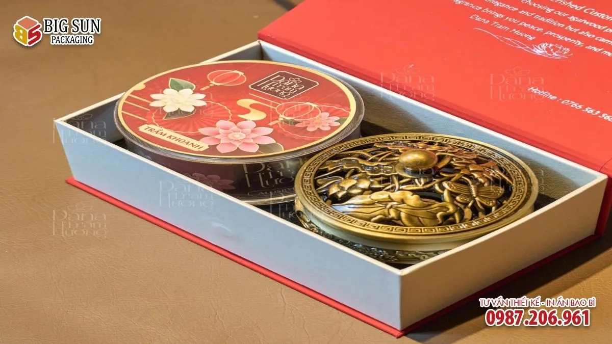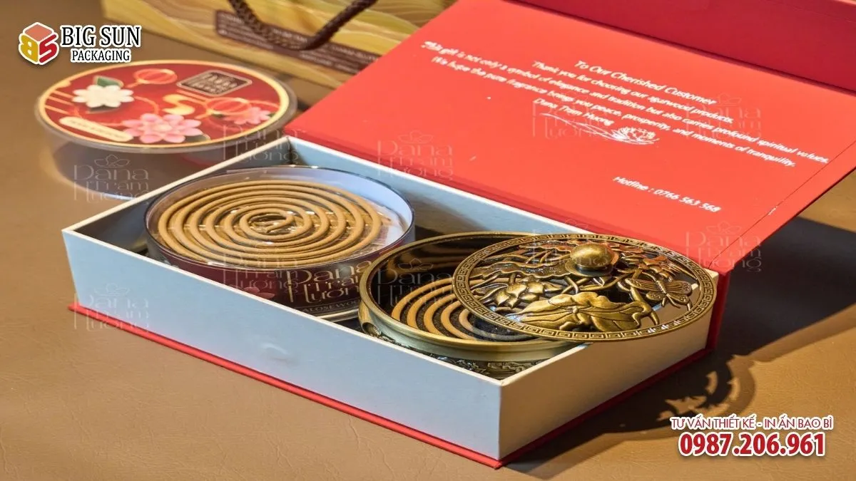 Một mẫu hộp đựng nhang chất lượng cao được đầu tư bài bản không chỉ bảo vệ sản phẩm mà còn nâng tầm giá trị tinh thần của món quà. Bao bì giúp người tặng truyền tải trọn vẹn lời chúc Phúc Lộc Thọ, đồng thời tạo ấn tượng về sự chỉn chu, tôn trọng và tinh tế đối với người nhận.