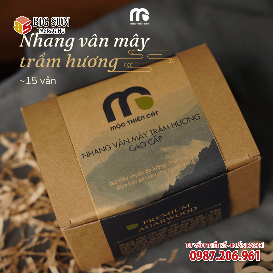 Mẫu hộp đựng nhang trầm hương vân mây Mộc Thiên Cát do Big Sun thiết kế và sản xuất là một minh chứng hoàn hảo cho sự kết hợp giữa vẻ đẹp mộc mạc và đẳng cấp sang trọng. Đây không chỉ là một chiếc hộp, mà là một giải pháp bao bì toàn diện, được nghiên cứu kỹ lưỡng để tôn vinh giá trị sản phẩm bên trong.