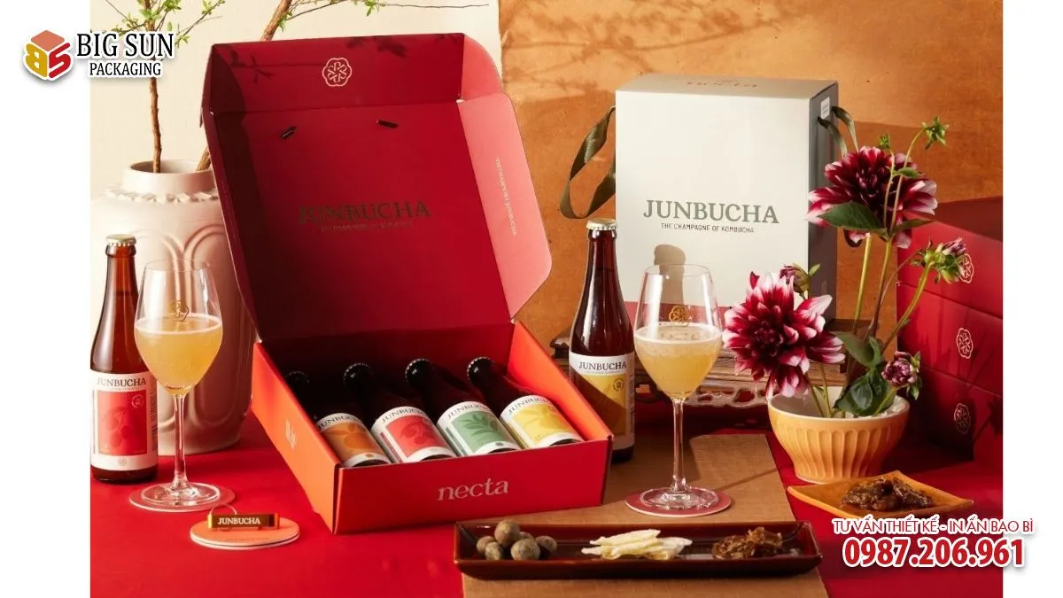 Một hộp đựng rượu được đầu tư bài bản không chỉ bảo vệ sản phẩm mà còn truyền tải thông điệp về sự chỉn chu và tôn trọng người nhận. Set hộp JunBuCha cho thấy cách thương hiệu kể câu chuyện của mình thông qua bao bì – tinh tế, hiện đại và có chiều sâu.