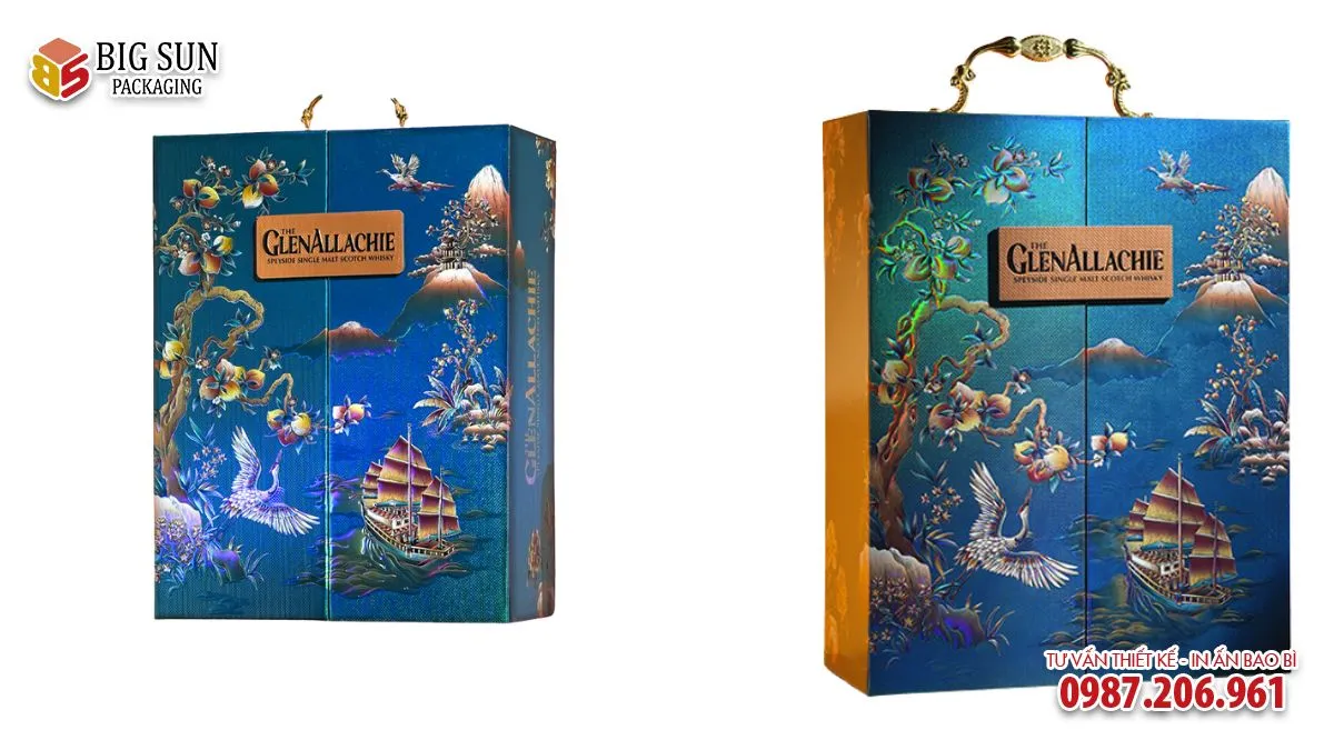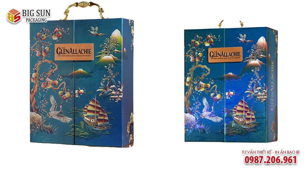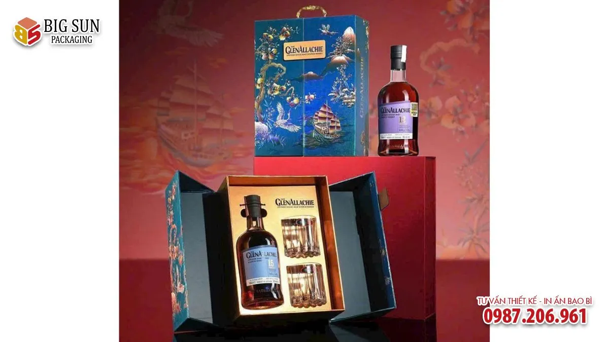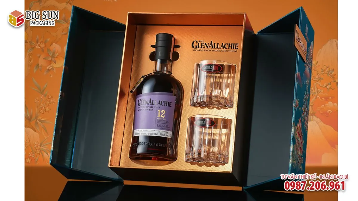 Đối với sản phẩm whisky GlenAllachie 12, hộp đựng rượu vừa đóng vai trò bảo quản sản phẩm, vừa làm tăng giá trị quà tặng, truyền tải thông điệp may mắn, hanh thông và thành công phù hợp với các dịp lễ, tết, kỷ niệm hay tri ân đối tác.