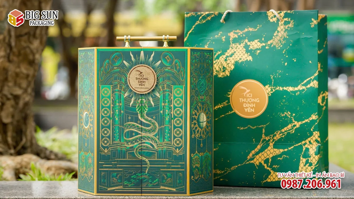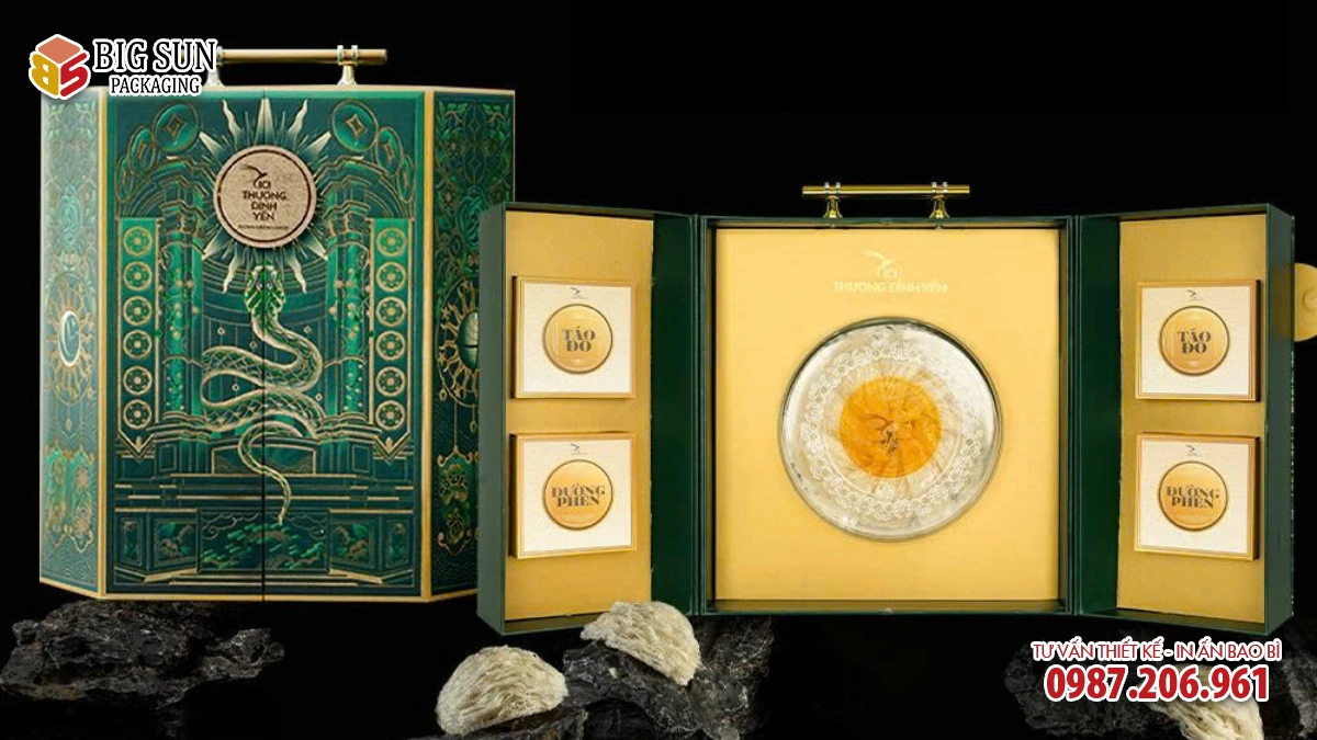 Big Sun có riêng đội ngũ thiết kế am hiểu nhu cầu người dùng và thị hiếu của khách hàng, hỗ trợ dựng mockup 2D – 3D trước khi sản xuất, giúp bạn có thể hình dung thành phẩm. Đặc biệt, xưởng có xây dựng quy trình in test màu, duyệt màu trực tiếp và gia công hoàn thiện được kiểm soát chặt chẽ, đảm bảo sản phẩm đầu ra đồng nhất, sắc nét và đúng tinh thần thiết kế ban đầu. Ngoài ra, Big Sun còn linh hoạt tùy chỉnh kích thước, chất liệu và công nghệ in theo từng nhu cầu cụ thể của thương hiệu yến.