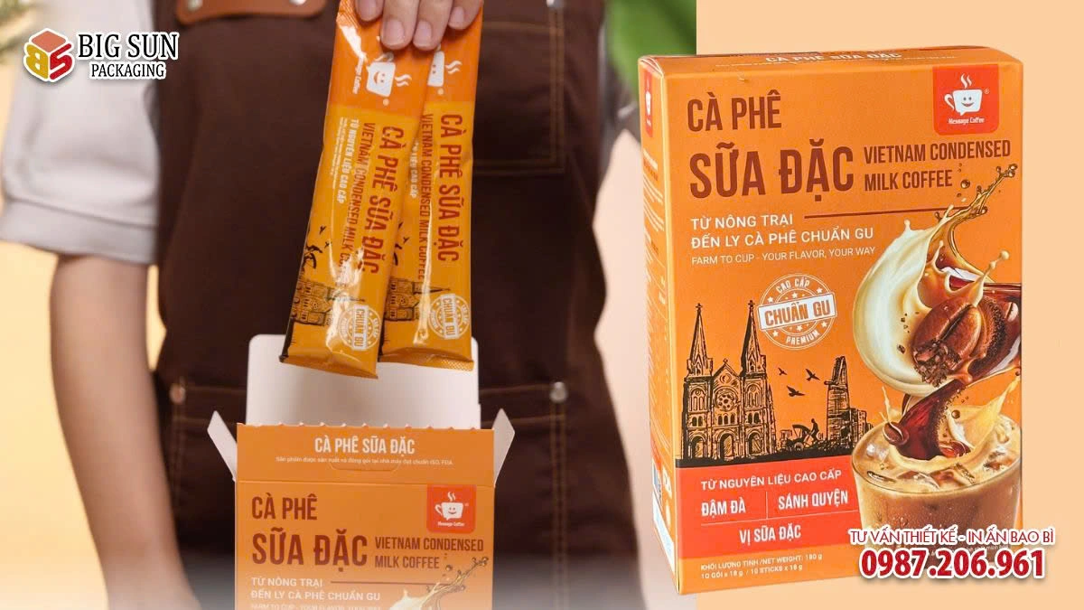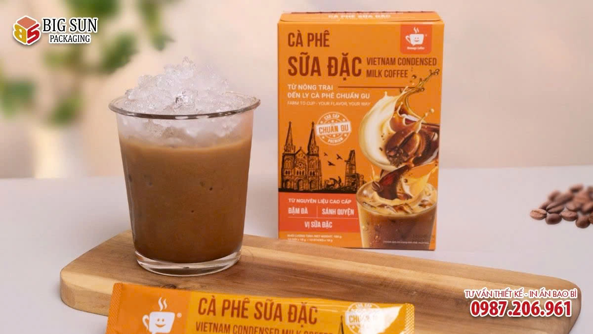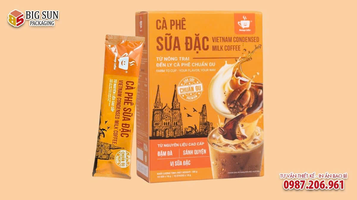 Qua tuyệt tác này, Bao Bì Big Sun muốn giới thiệu đến quý khách hàng dịch vụ in hộp đựng cà phê chuyên nghiệp. màu sắc rõ nét, hiện thực hóa ý tưởng đó thông qua giải pháp in hộp đựng Cà Phê Sữa Đặc chỉn chu, phù hợp với định vị sản phẩm và nhu cầu thị trường.
