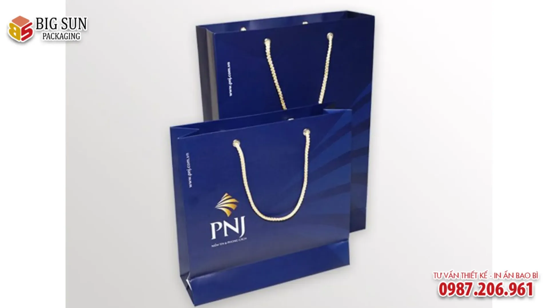 Kỹ thuật ép kim vàng (Hot Stamping): Không sử dụng mực in thông thường cho logo, PNJ sử dụng kỹ thuật ép kim nhũ vàng với nhiệt độ cao. Lớp nhũ vàng bám chặt vào sợi giấy tạo độ bóng gương lấp lánh, bền màu theo thời gian và không bị bong tróc.