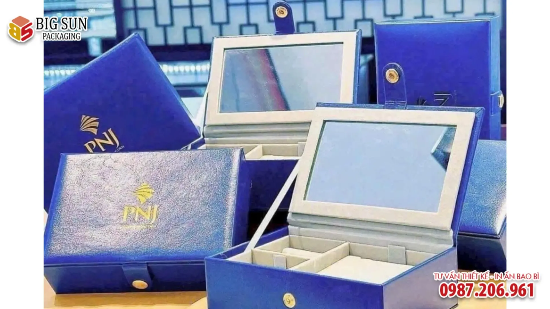 Mỗi sản phẩm trang sức khi nằm trong chiếc hộp thiết kế riêng sẽ trở nên lấp lánh và giá trị hơn gấp bội, khẳng định uy tín của một thương hiệu kim hoàn hàng đầu khu vực.