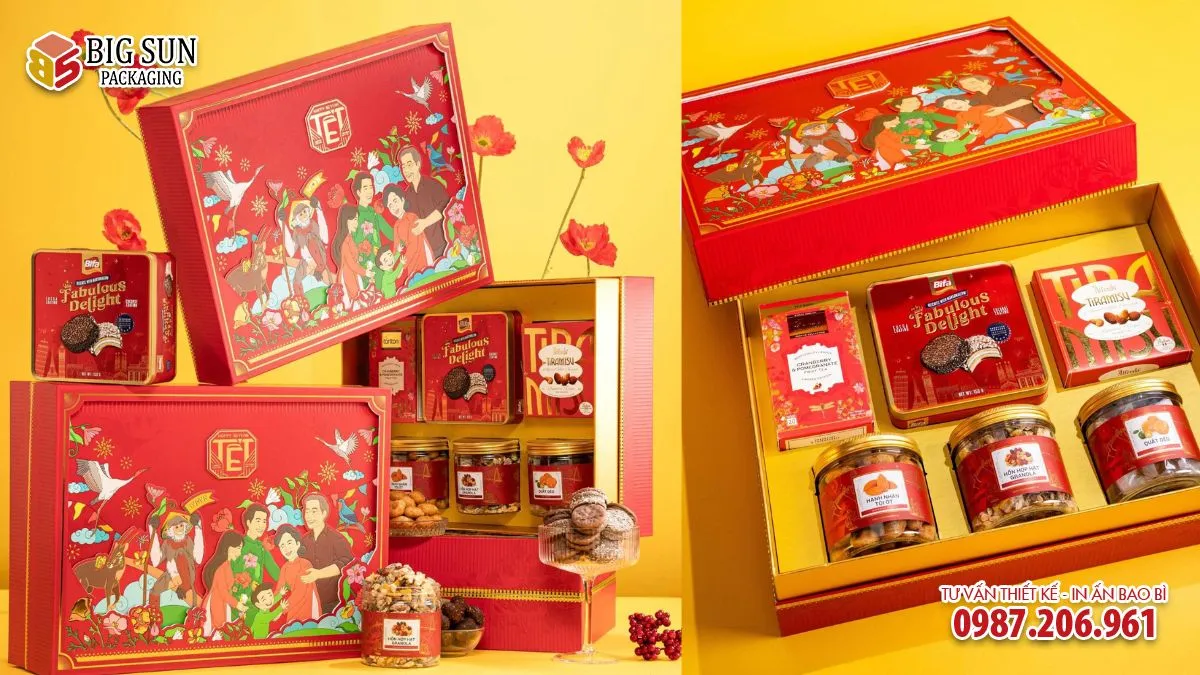 Truyền tải giá trị cốt lõi: Một thiết kế hộp sang trọng với chất liệu cao cấp sẽ truyền tải thông điệp về một thương hiệu đẳng cấp, luôn đặt chất lượng lên hàng đầu. Ngược lại, một mẫu hộp tết với chất liệu tái chế, thiết kế mộc mạc lại kể câu chuyện về một thương hiệu bền vững, thân thiện với môi trường.