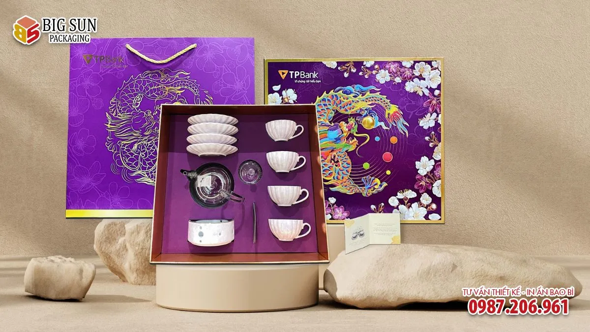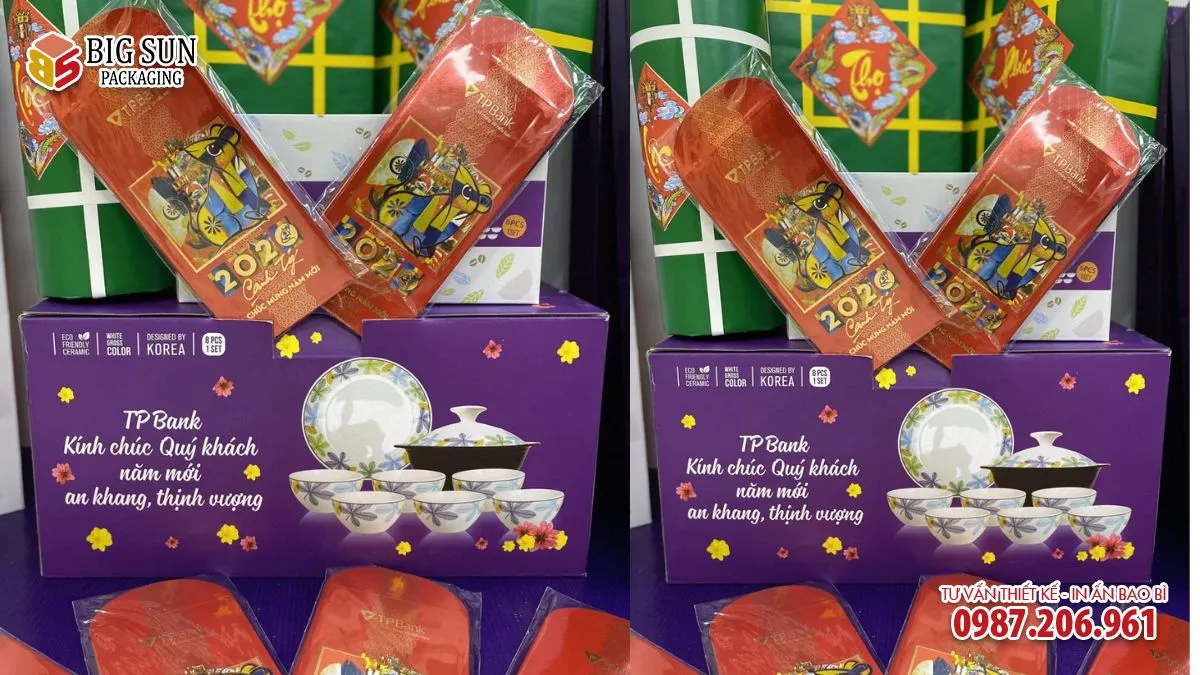 Với các mẫu hộp tết thương hiệu của ngân hàng TPBank qua nhiều năm cho thấy sự đầu tư bài bản về thiết kế, chất liệu và in ấn. Từ màu sắc nhận diện, bố cục hình ảnh cho đến cấu trúc hộp, tất cả đều được xây dựng nhằm tạo nên một tổng thể đồng nhất, dễ nhận diện và mang đậm không khí Tết hiện đại nhưng vẫn giàu ý nghĩa văn hóa.
