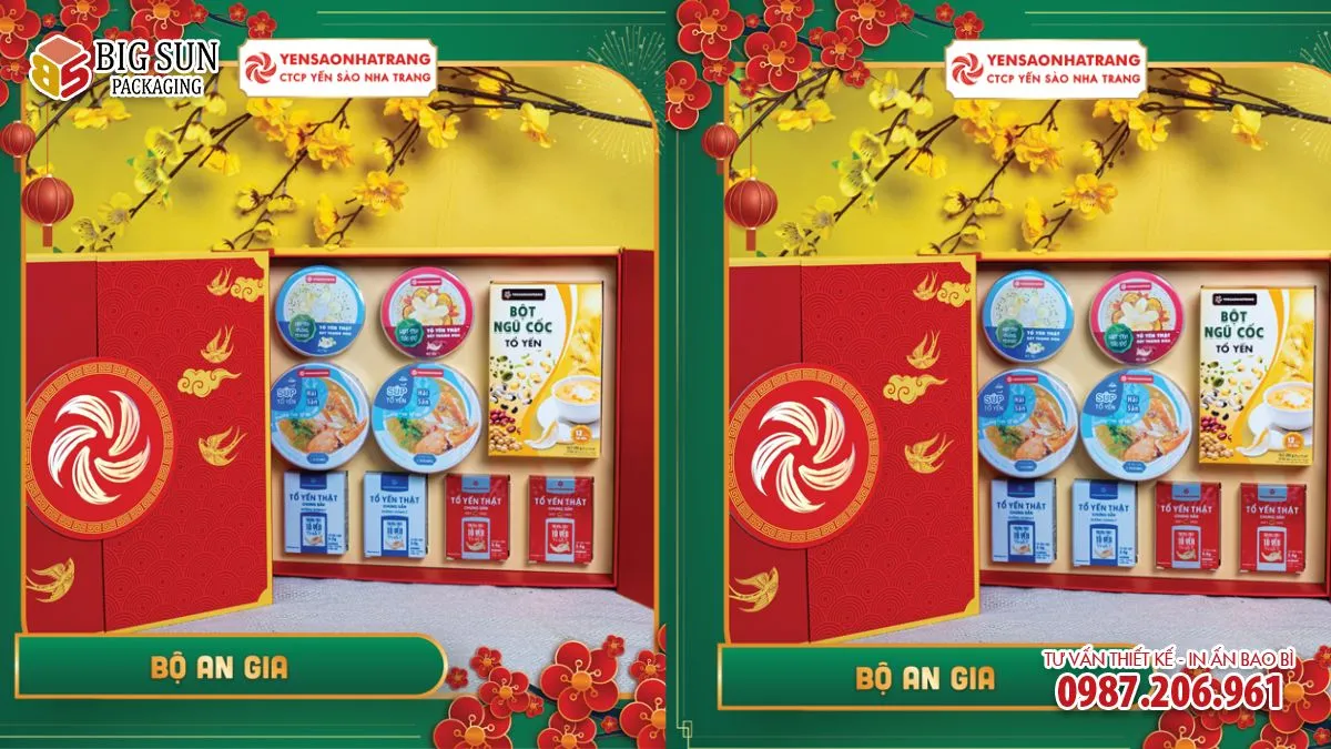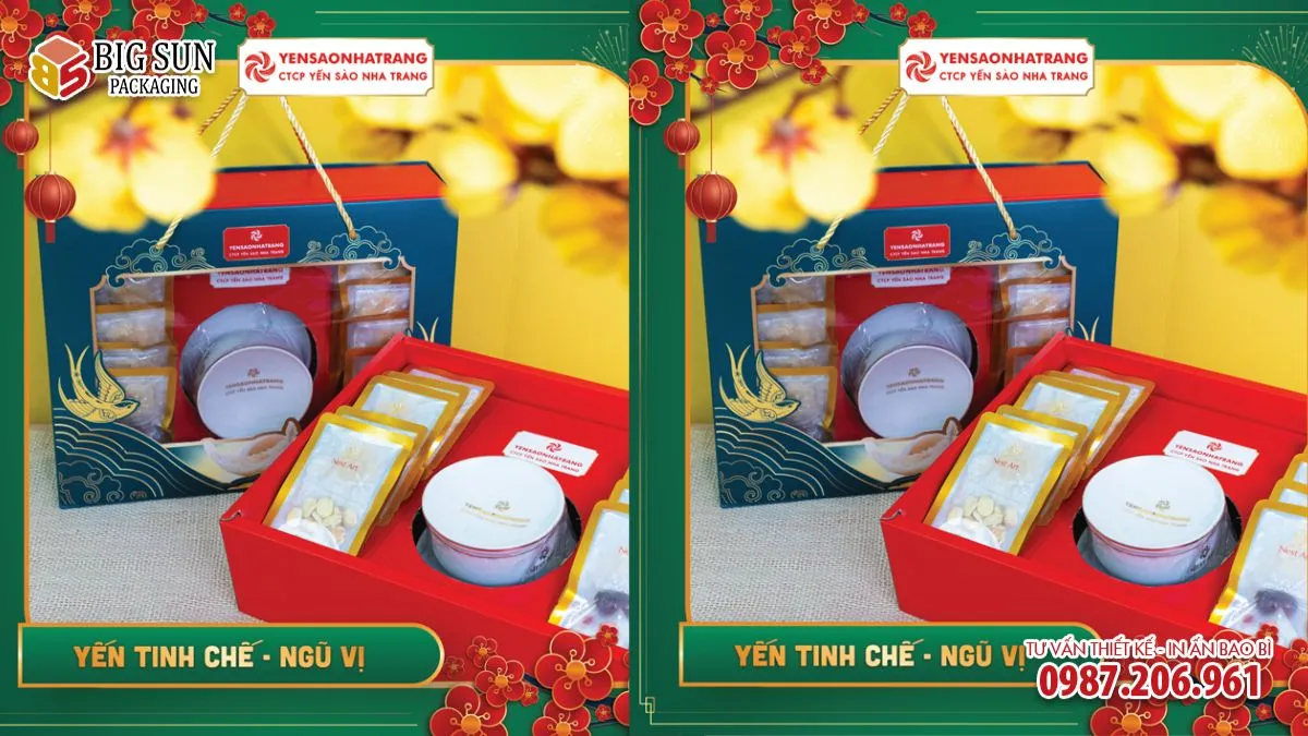Với các dòng hộp quà Tết Yến Sào Nha Trang, bao bì không chỉ dừng ở chức năng bảo quản, mà được đầu tư bài bản về màu sắc, chất liệu, cấu trúc và kỹ thuật in ấn. Mỗi mẫu hộp là một chỉnh thể hài hòa giữa yếu tố truyền thống ngày Tết và tinh thần cao cấp của sản phẩm yến sào – thứ quà gắn liền với sức khỏe và sự bền bỉ.