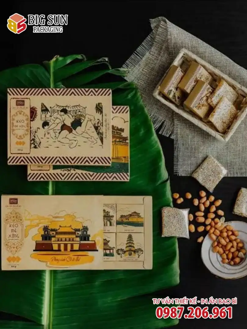 Hôm nay, Big Sun mang đến dịch vụ in hộp đựng kẹo mè xửng Huế không chỉ để bảo quản sản phẩm, mà còn để kể một câu chuyện văn hóa, nâng tầm giá trị đặc sản và khẳng định vị thế thương hiệu của bạn.