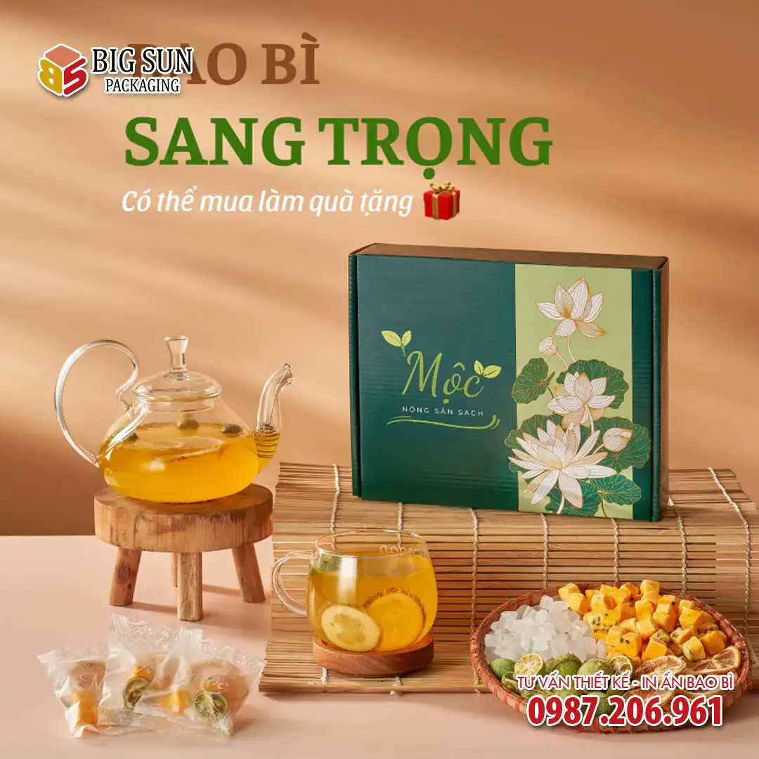 Sản phẩm mẫu in hộp trà Mộc do Bigsun thiết kế và sản xuất là minh chứng cho thấy, một bao bì thành công không cần phải quá cầu kỳ, mà chính sự tinh giản, sang trọng và thấu hiểu sản phẩm mới là chìa khóa chạm đến trái tim người tiêu dùng. Nó biến một sản phẩm nông sản sạch thành một món quà tặng ý nghĩa, một vật phẩm trưng bày đẹp mắt.