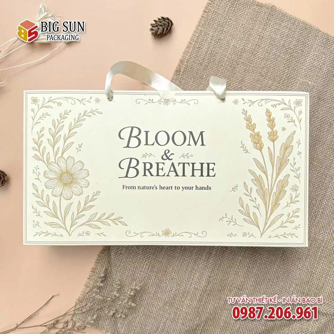 Mẫu in hộp trà quà tặng thảo mộc “Bloom & Breathe” chính là minh chứng sống động cho triết lý thiết kế và năng lực sản xuất của chúng tôi, một giải pháp in hộp trà không chỉ để chứa đựng, mà còn để kể chuyện.