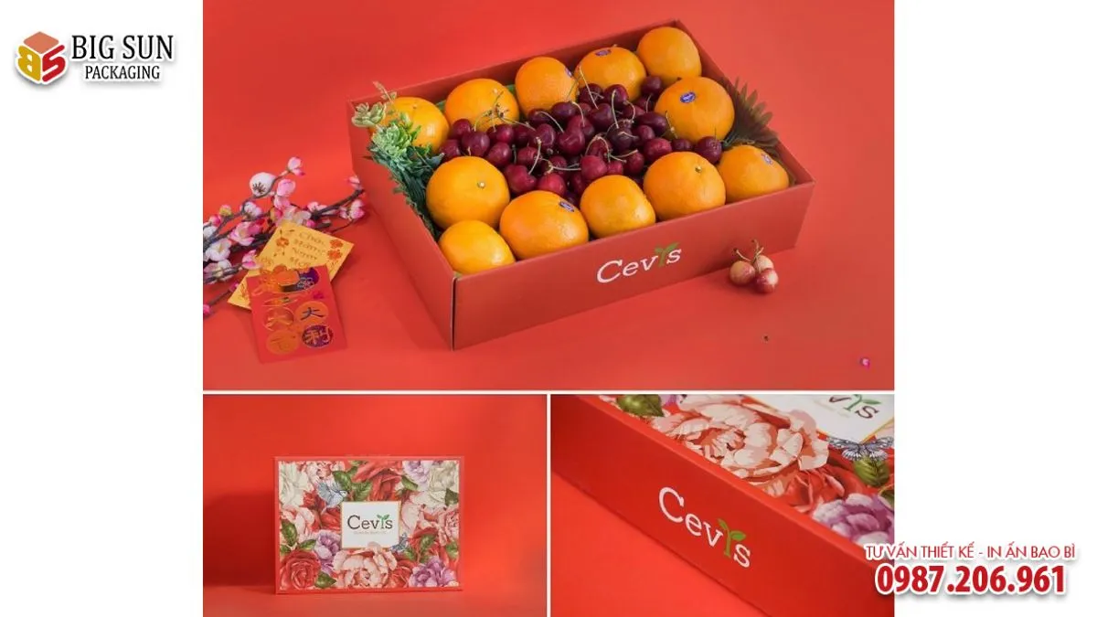 Hình ảnh minh họa: Sử dụng công nghệ in hình ảnh trái cây thật 100%, sống động với màu sắc tươi tắn như cam đỏ, bưởi xanh, giúp khách hàng nhận diện ngay lập tức loại quả bên trong mà không cần mở hộp.