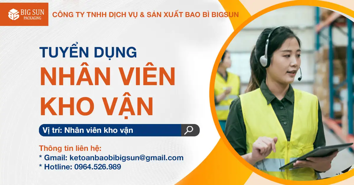 Big Sun tuyển dụng nhân viên Kho vận – Quản lý nhập xuất, sắp xếp và kiểm kê hàng hóa. Thu nhập ổn định.